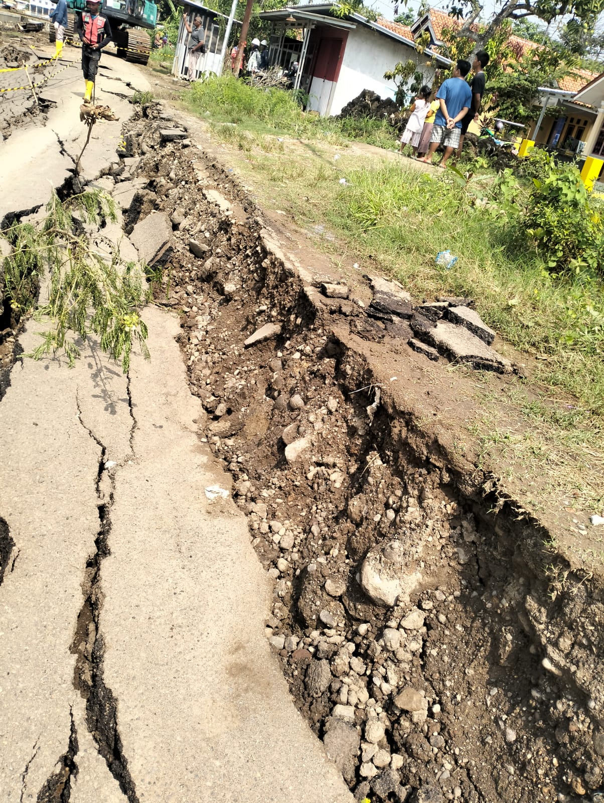 Kerusakan retaknya jalan tersebut di rasakan oleh warga masyarakat setempat, sejak Sabtu hingga Minggu kemarin jalan tersebut rusak terlihat bertambah parah, longsor sampai sekarang .