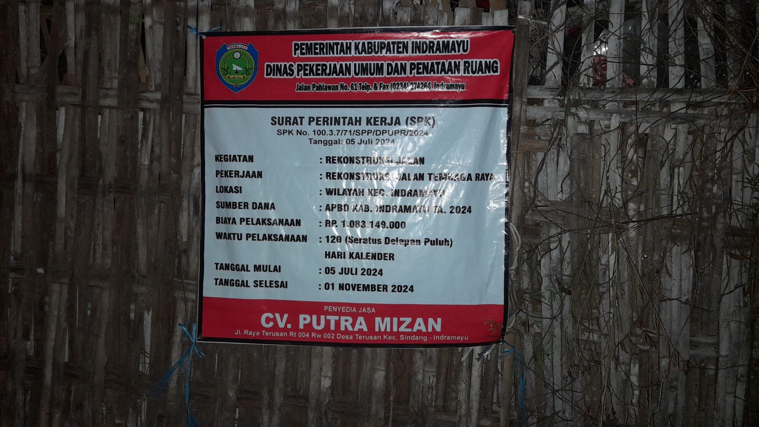 Sekedar informasi, rekonstruksi Jalan Talang Tembaga tersebut didanai dari APBD Kabupaten Indramayu tahun anggaran 2024 melalui Dinas PUPR setempat dengan total senilai Rp.1.083.149.000, yang dikerjakan oleh perusahaan jasa konstruksi CV PUTRA MIZAN.