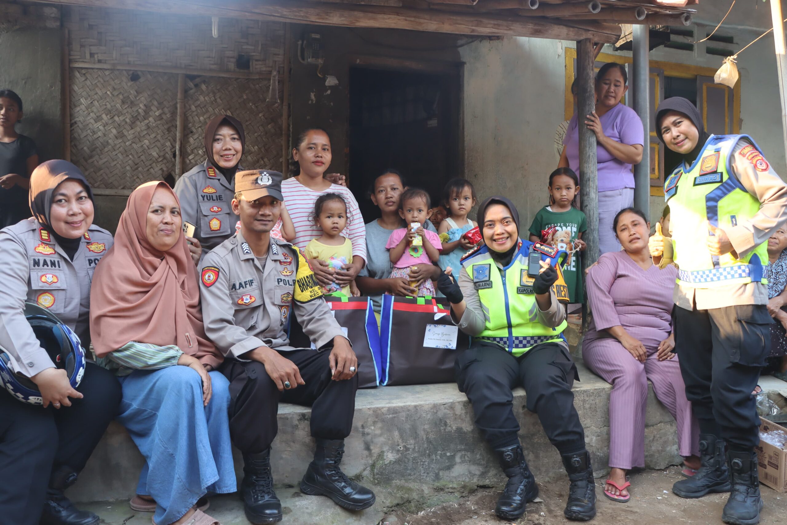 Bahkan, Kombes Pol Sumarni, S.I.K, S.H, M.H, juga turut menyapa warga Kelurahan Gegunung dan membagikan bantuan makanan sehat berupa susu, buah, hingga biskuit kepada anak-anak yang ditemui di sepanjang jalan di kawasan tersebut.