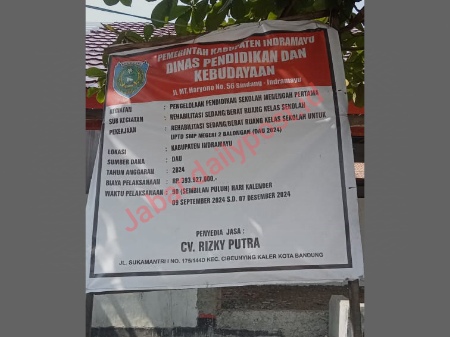 Indramayu, Jabar.dailypost.id – CV Rizky Putera, kontraktor pelaksana proyek rehabilitasi ruang kelas UPTD SMP Negeri 2 Balongan, Kabupaten Indramayu, menjadi sorotan publik atas dugaan pengabaian standar keselamatan kerja. Proyek yang didanai Dana Alokasi Umum (DAU) 2024 dengan nilai kontrak Rp 393.927.000 tersebut diduga tidak mematuhi kewajiban penggunaan Alat Pelindung Diri (APD) bagi para pekerja, memicu kekhawatiran akan kualitas konstruksi yang dihasilkan.