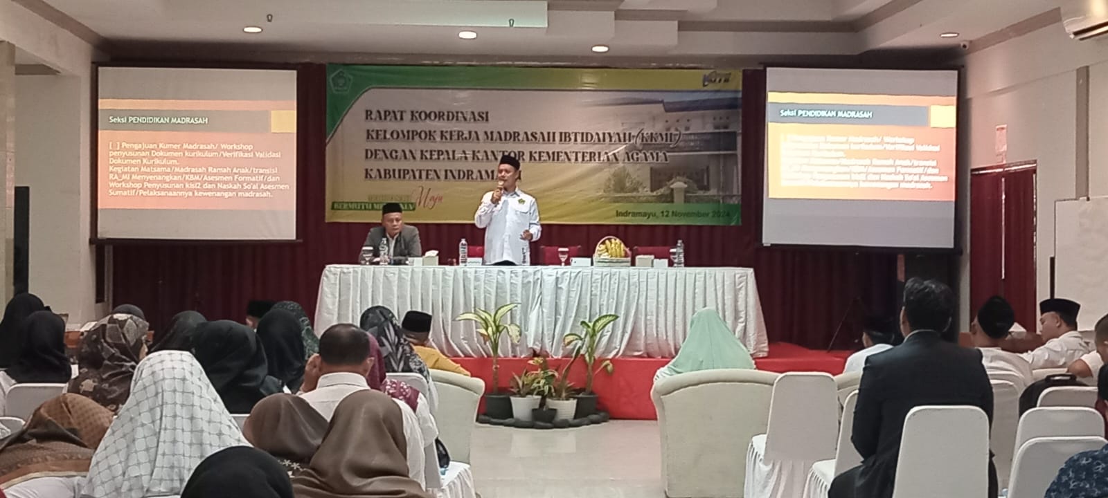 Rapat Koordinasi Kelompok Kerja Madrasah Ibtidaiyah (KKMI) se-Kabupaten Indramayu dengan Kepala Kementerian Agama (Kemenag) Kabupaten Indramayu berlangsung lancar dan sukses. Acara tersebut diselenggarakan di Aula Hotel Trisula, Jl. DI Panjaitan No. 77, Karanganyar, Kec. Indramayu, Kabupaten Indramayu, Jawa Barat 45213, pada Selasa (12/11/2024).