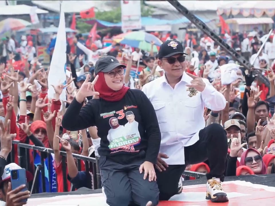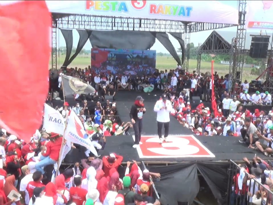 Pesta rakyat kampanye akbar pasangan Calon Bupati dan Wakil Bupati Indramayu, Nina Agustina dan Tobroni berlangsung semarak. Puluhan ribu pendukung hadir memadati lapangan sepak bola Desa Gabuswetan, Sabtu (23/11/2024).