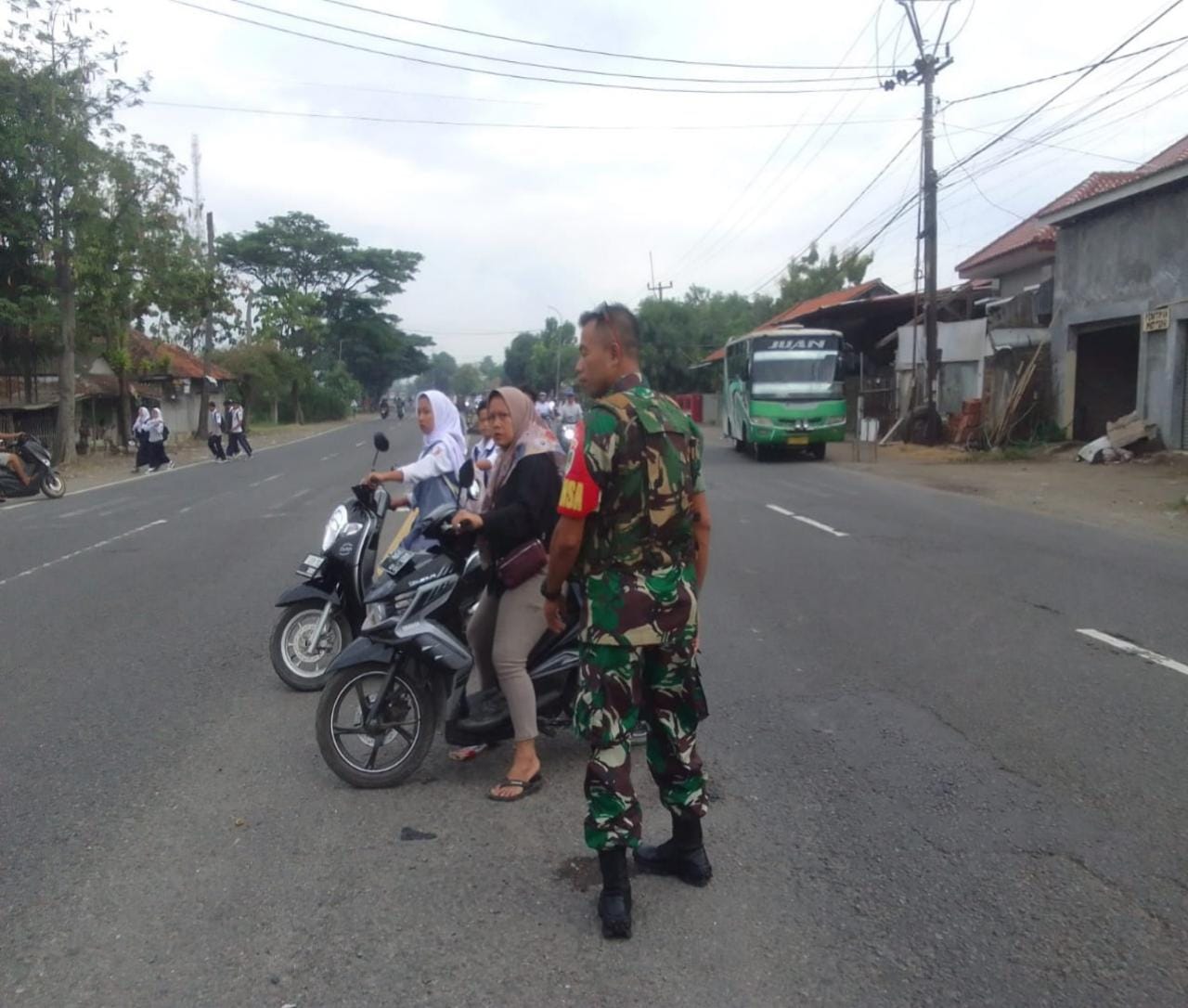 Sukagumiwang, Jabar.dailypost.id – Dalam upaya menjaga keamanan dan keselamatan pelajar di wilayah Sukagumiwang, Koramil 0616-05/Sukagumiwang, melalui Babinsa Sertu Duloh, melaksanakan kegiatan penyeberangan siswa pada Jumat pagi (29/11). Kegiatan ini berlangsung di Jl. By Pass Kertasemaya, tepatnya di kawasan yang menjadi jalur lalu lintas utama bagi siswa SMPN dan SMAN Sukagumiwang.