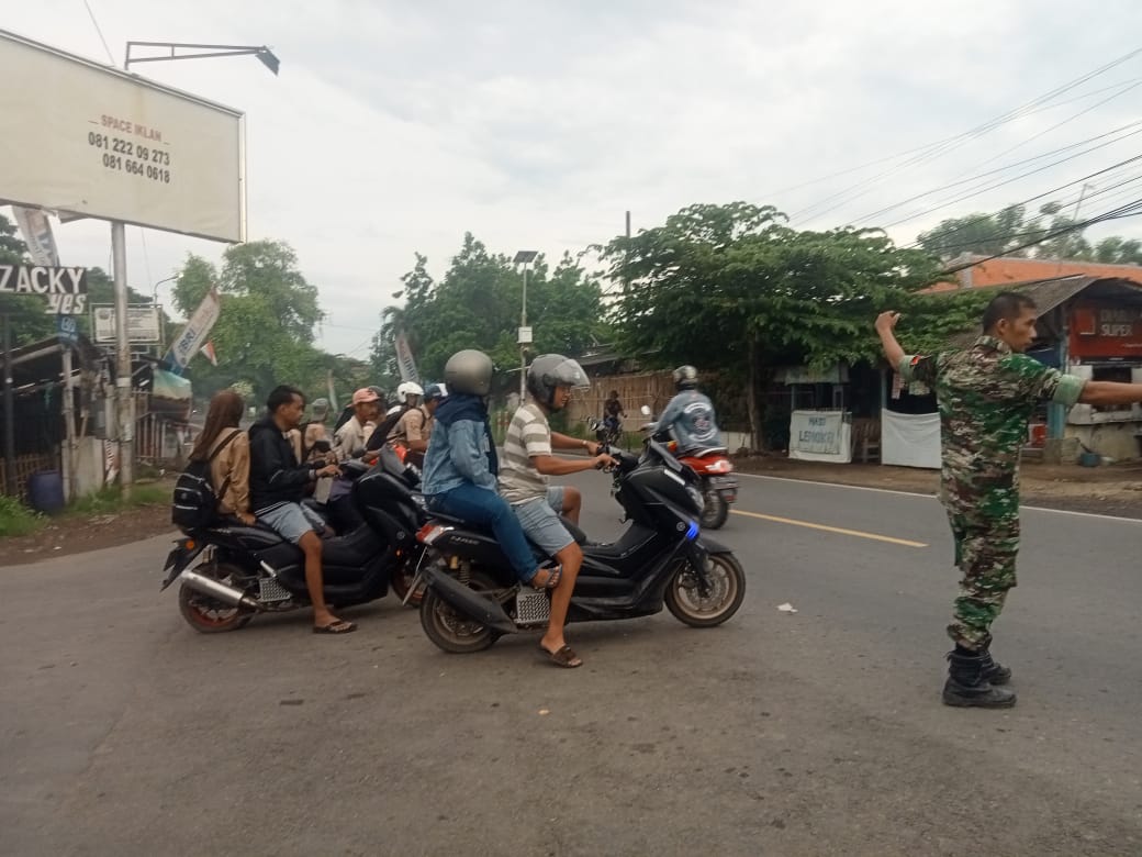 Jalan raya di Kecamatan Juntinyuat dikenal dengan lalu lintasnya yang padat, baik kendaraan roda dua maupun roda empat. Kepadatan ini berpotensi membahayakan pejalan kaki, terutama anak-anak yang kerap kesulitan menyeberang. Oleh karena itu, kehadiran personel Koramil dalam membantu penyebrangan sangat berarti bagi keselamatan dan kenyamanan masyarakat.