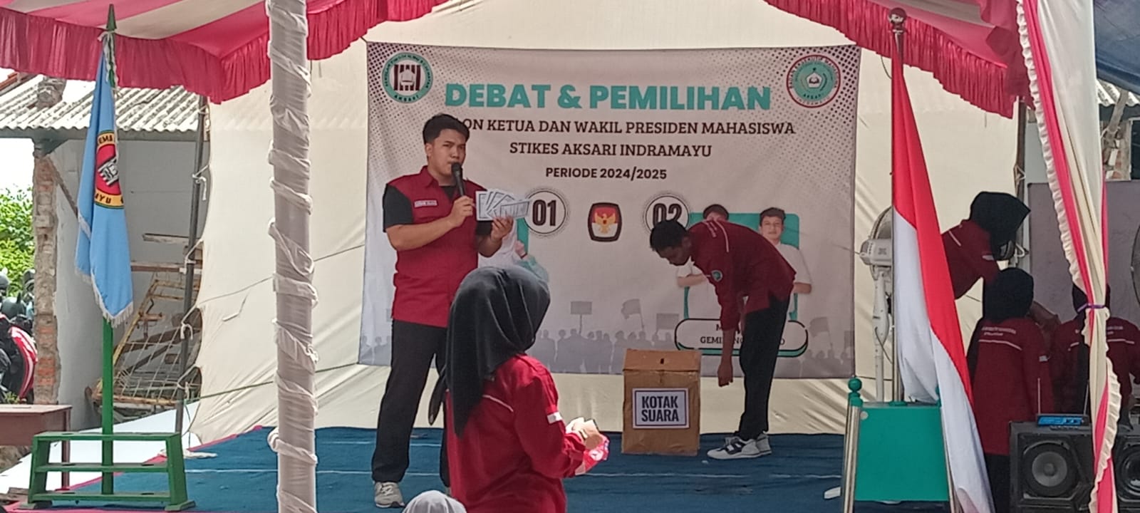 Sekolah Tinggi Ilmu Kesehatan (STIKES) Aksari menggelar acara pemilihan Ketua dan Wakil Ketua Badan Eksekutif Mahasiswa (BEM) untuk masa bakti 2024-2025. Kegiatan ini berlangsung di Kampus STIKES Aksari, Jalan Pahlawan No. 45, Lemahmekar, Kecamatan Indramayu, Kabupaten Indramayu, Jawa Barat, pada Kamis (5/12/2024). Acara ini juga dirangkaikan dengan kegiatan donor darah yang bekerja sama dengan PMI Indramayu.